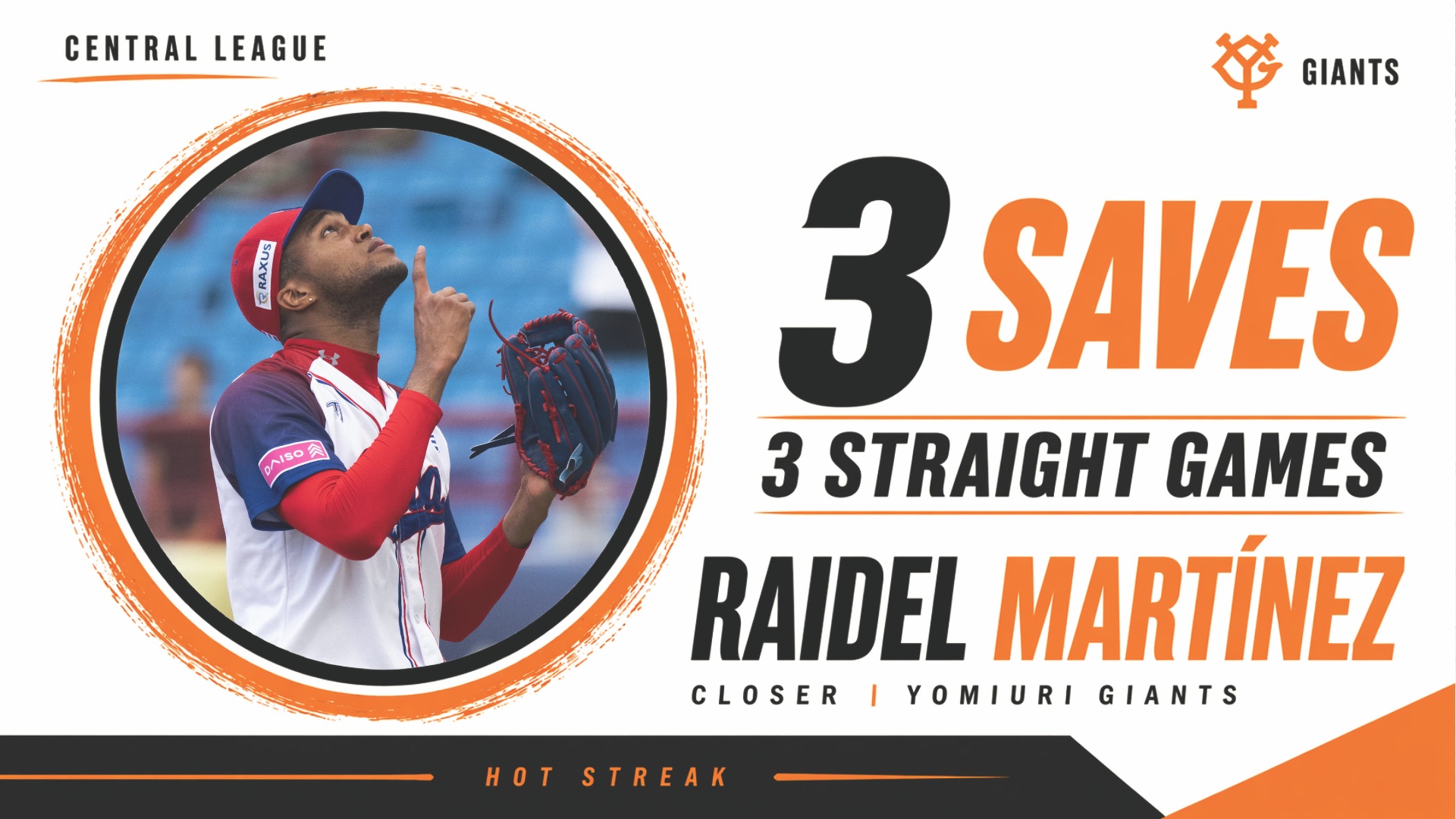 巨人の守護神 ライデル・マルティネス がヤクルト戦で9回を無失点に抑え、3試合連続で3セーブ目をマークした。