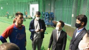 キューバ野球連盟の副会長のヘルマン・メサらが出迎え、代表チームの練習を視察。稲葉GMは今シーズンから日本ハムに加入したアリエル・マルティネスや2017年に在籍したヤディル・ドレイクらと話す場面も見られた。